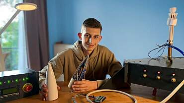 Henrik Ridder mit der Spitze seiner Wasserrakete