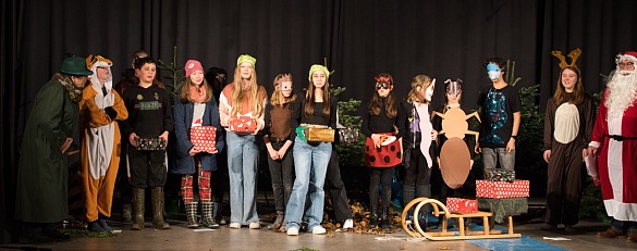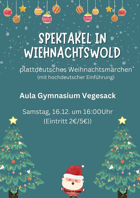 In der vergangenen Woche führten unsere Schüler und Schülerinnen das Weihnachtsstück "Mit Mumm vörweg - Opgeven is keen Opschoon" in der Aula unserer Schule auf. An insgesamt drei Vorstellungen nahmen rund 300 Zuschauer teil, vor allem die 5. Klassen unserer Schule sowie der Grundschule Schönebeck.