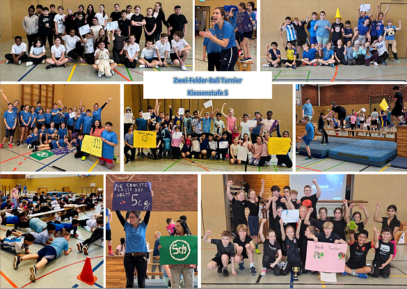 In den letzten Wochen verwandelte sich unsere Schule in eine wahre Sportarena! Bei den spannenden Turnieren der Jahrgänge 5 bis Q1 kämpften die Schülerinnen und Schüler in den unterschiedlichsten Disziplinen, von Zweifelderball und Fußball über Brennball, Reboundball und Unihoc bis hin zu Volleyball und Basketball.