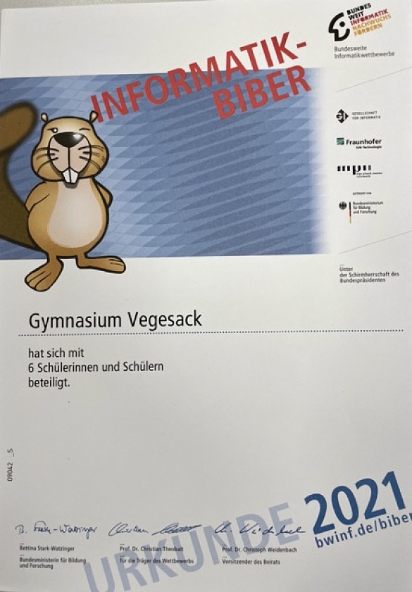 Das Gymnasium Vegesack hat 2021 zum ersten Mal am Informatik-Biber teilgenommen.