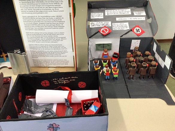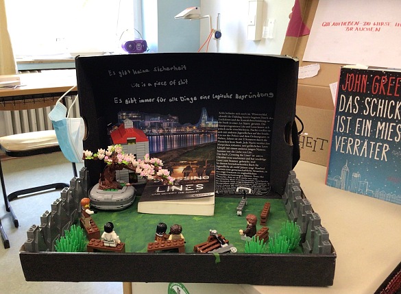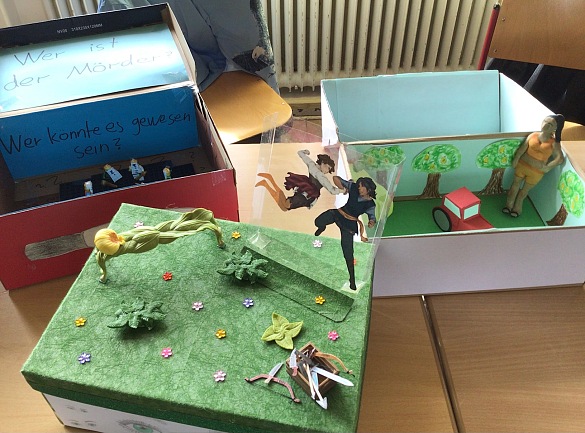 In den vergangenen Wochen haben die 9d und die 9e intensiv an der Gestaltung ihrer Schuhkartons sowie an der Vorbereitung ihrer Buchpräsentationen gearbeitet. In Zweier-Teams stellen sie in den nächsten Wochen ihren frei ausgewählten Roman ihren Mitschülern vor - von Drama über Liebesgeschichte und Sciencefiction ist alles dabei!